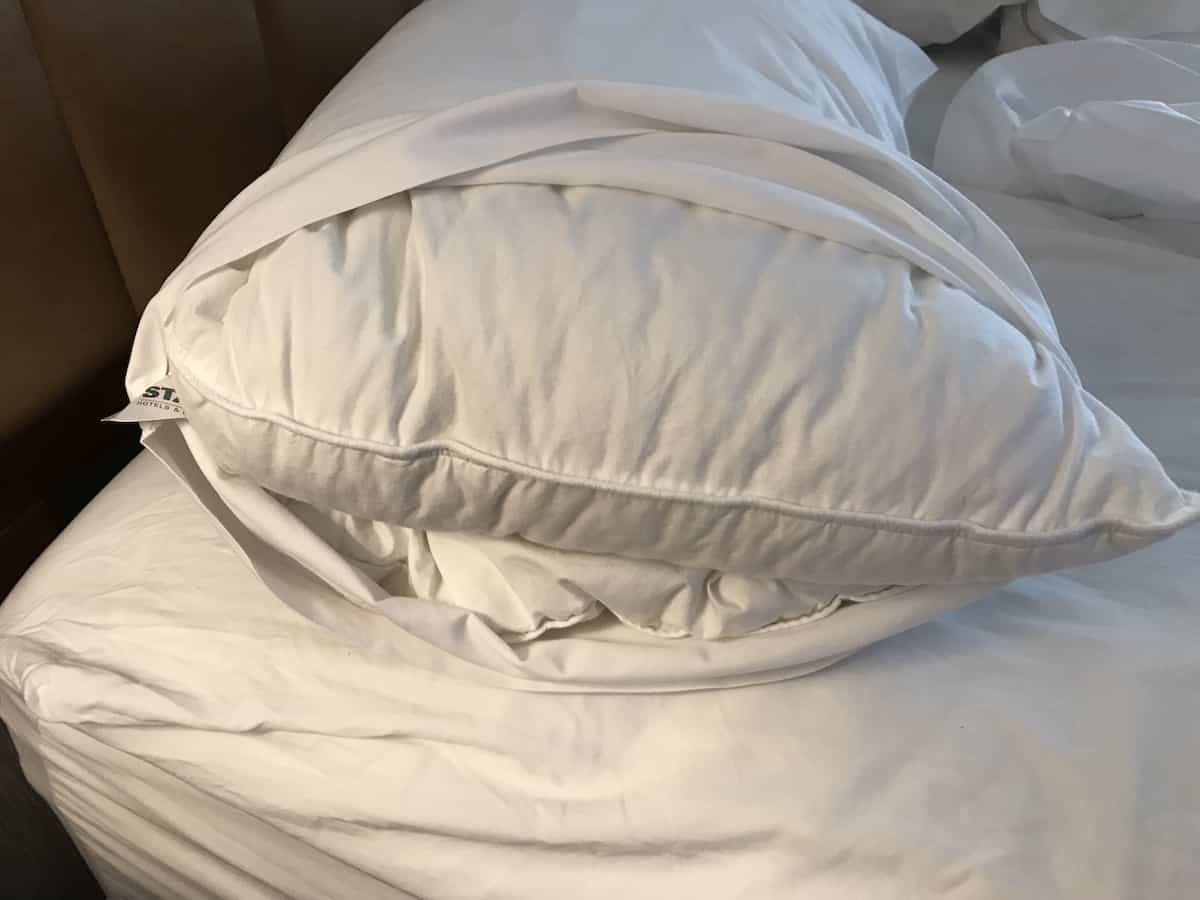 I’m staying at a lovely hotel this week, speaking at a conference. For me, the bed is comfortable except for the pillows. The feather pillows scrunch down where my head is and raise up around my ears. I don’t feel the benefit of a raised head.